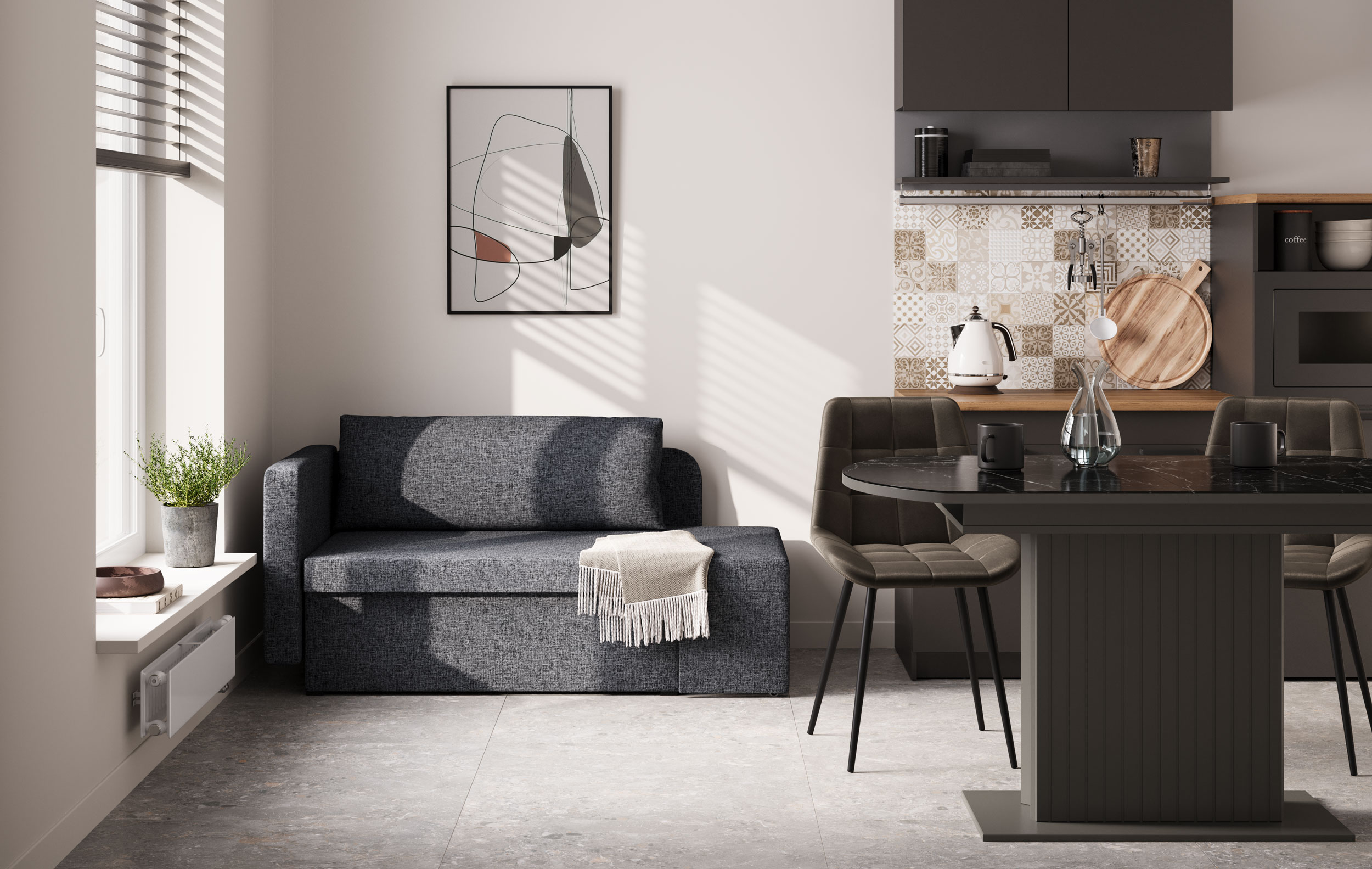 Шони / тахта (рогожка серая) совмещает благородную привлекательную эстетику с практичностью и хорошим функционалом. Продуманный дизайн уместно дополнит созданный интерьер и органично впишется в любое помещение.