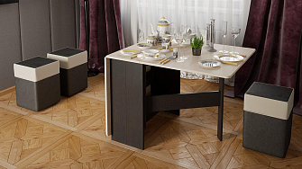 Покупали для маленькой гостиной, осознавая его размеры. функцию стола выполняет отлично. удобно. Удобно пользоваться сидя на диване, 6 человек свободно садятся. В сложенном состоянии почти не занимает драгоценное место.