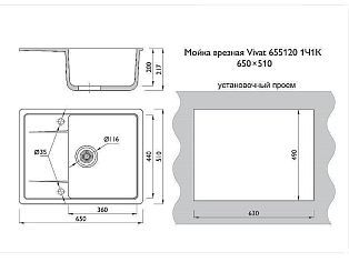 Мойка врезная Vivat 655120 1Ч1К