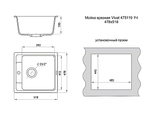 Мойка врезная Vivat 475119 1Ч
