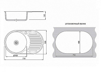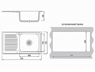 Мойка врезная 764218/0,6 1Ч1К (правая)