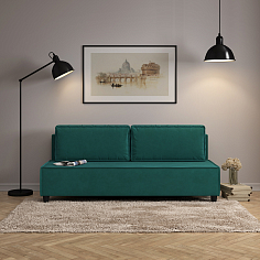 Заказала этот диван в изумрудном цвете. Понравилась его форма – строгая и в то же время необычная. Диван не громоздкий, занимает немного места как в сложенном, так и в разложенном положении. Раскладывается легко. Ткань плотная, качественная и приятная на ощупь.